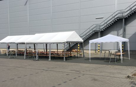 Lieferung inkl. Auf- und Abbau kostet 250 € pro Zelt.